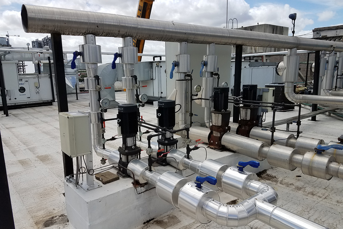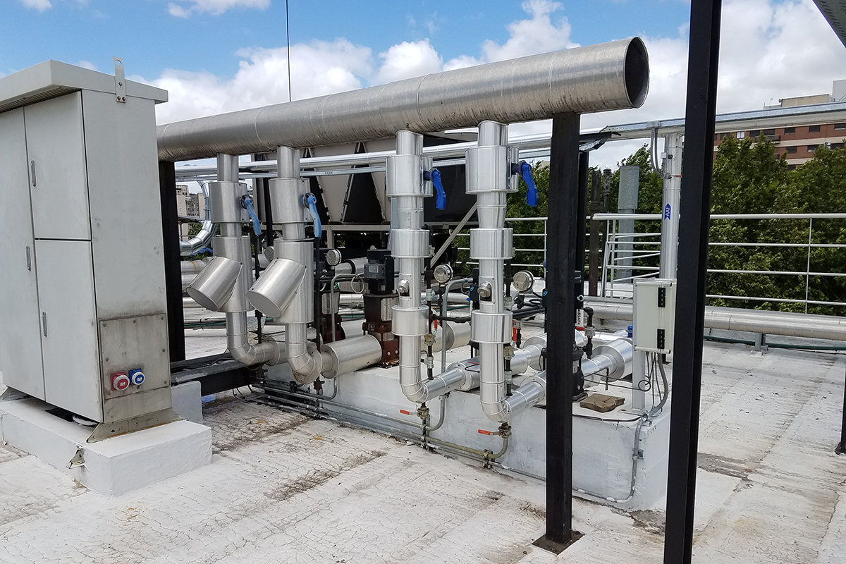 Los recursos puestos en juego implicaron un total de 20 personas en obra en los diferentes ámbitos de la misma, instalación de conductos, cañerías, equipos, medios de elevación, electricidad, control, coordinación y validación de todas las instalaciones además de la incorporación de los sistemas nuevos a las plataformas de BMS existentes..