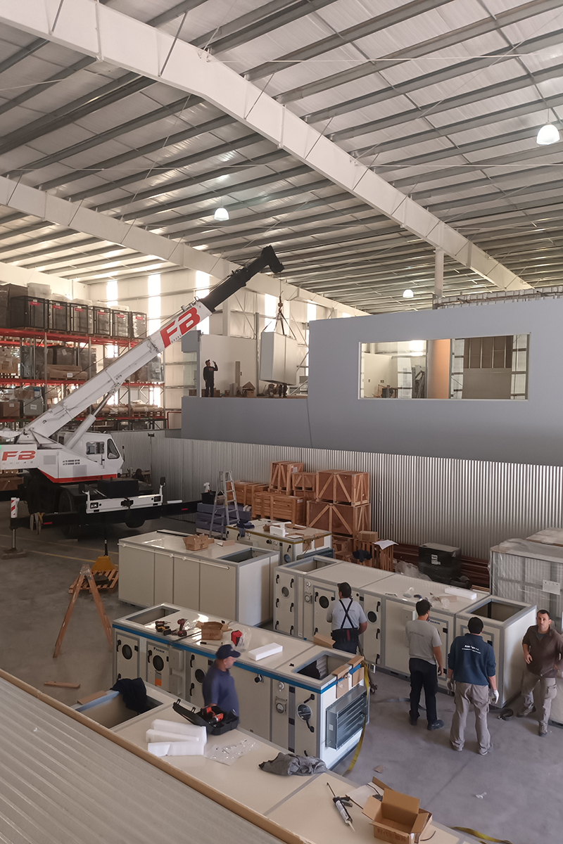 En total trabajaron unas 28 personas entre técnicos, oficiales de montaje (conductos y piping), profesionales especializados en electricidad, control y calificaciones.